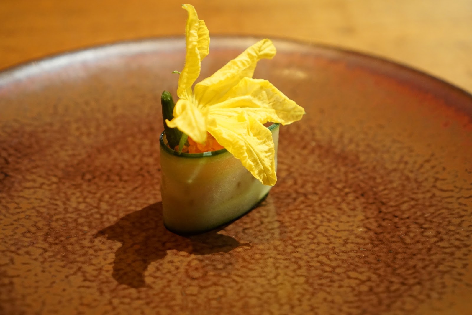 Encased within the thinly sliced cucumber were little bursts of ocean salinity that delighted my mouth. A very beautiful presentation as well.