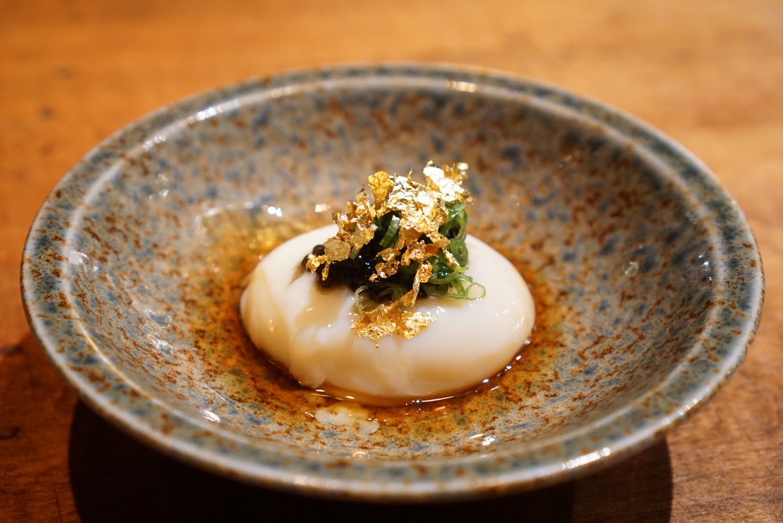 “Fabergé” Onsen Egg black river ossetra caviar, gold leaf, dashi sauce, green onion