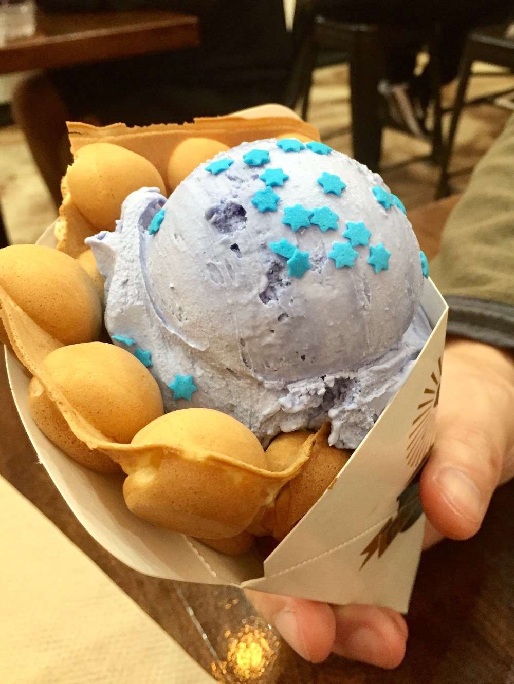 Cauldron delivered ice cream that was thick, smooth, and creamy. Just the way I like it. Not a single ice cream crystal could be found in the whole scoop. I have to ding them on the mildness of their ice cream flavors. Sometimes it’s not obvious what flavor you’re eating. Their puffle cones are not just a gimmick. They add notable value in taste and creativity. Eating the whole thing, puffle cone and ice cream is so much more than one person should consume so don’t be afraid to share. There’s more than enough calories to go around. If only I could use liquid nitrogen to make my ice cream at home.