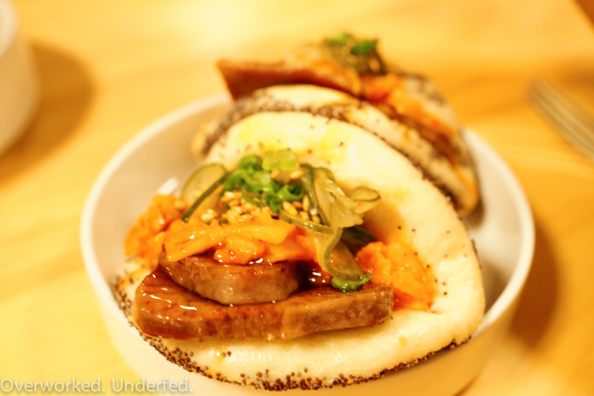 Beef Tongue kimchi, cucumber, poppy seed steamed bun
