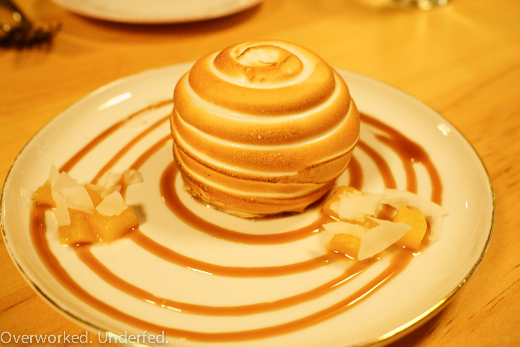 The baked hawaii is the signature dessert at Liholiho. It looks like a cute little beehive to me. The toasted meringue exterior houses a delicious pineapple cake within. I personally find pineapple dole whip that I make at home to be tastier, but this still meets the mark. I liked the banana dessert much better though.