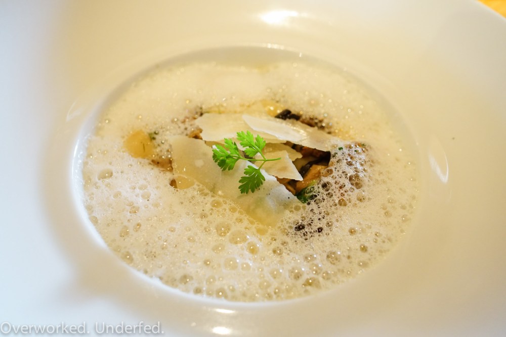 My first course was this OUTSTANDING gnocchi dish. Gnocchi can be quite heavy at times. It almost feels like it’s expanding in your stomach, but this wasn’t the case. The delightful potato pillows were submerged beneath a delicate umami packed broth, topped with shavings of cheese and surrounded by pan roasted mushrooms. It was an amazing dish considering there was no protein here.