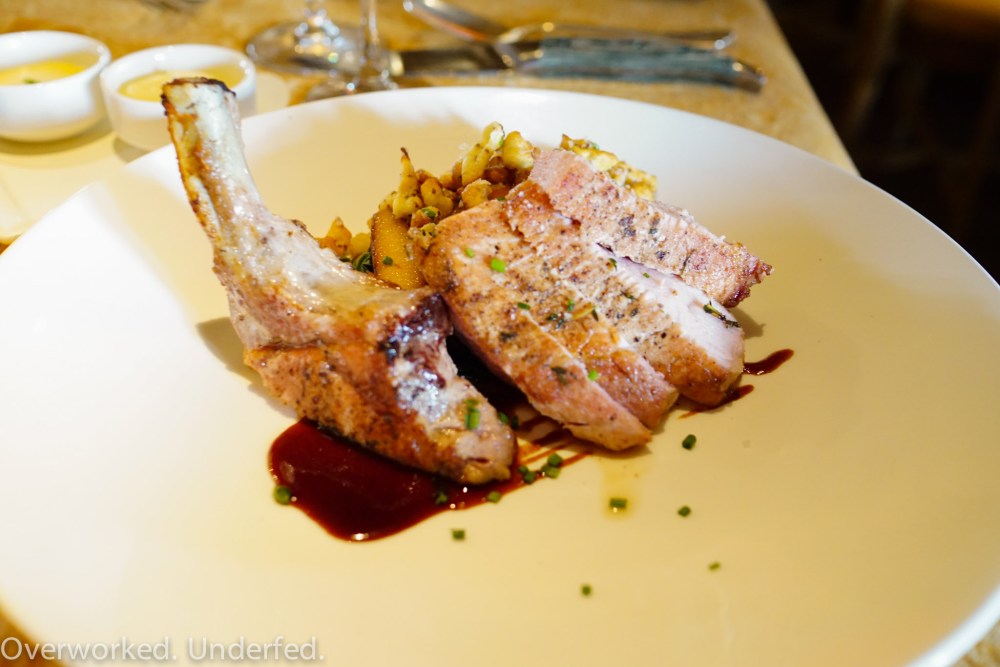Kurobuta Pork Chop ciopollini, whole grain mustard spätzle, swiss chard, apple cider
