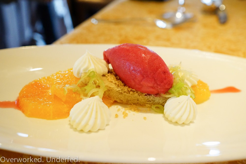 Blood Orange Sorbet fennel seed chiffon, cream cheese mousse, anise streusel